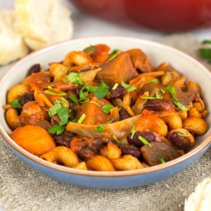 Anyway, silly disclaimer out of the way (and I bet I’ll still get an email from someone telling me off), onto the aubergine goulash. It’s a beautifully rich stew that’s packed with veggies, beans, and a little bit of pasta to make it feel extra hearty.
