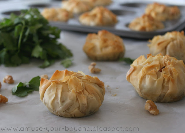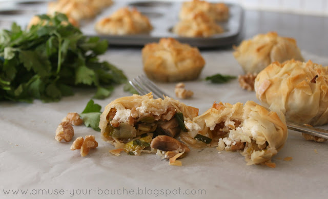 You could also make half as many larger parcels, and then serve them with a salad or a sauce for a great vegetarian appetiser.
